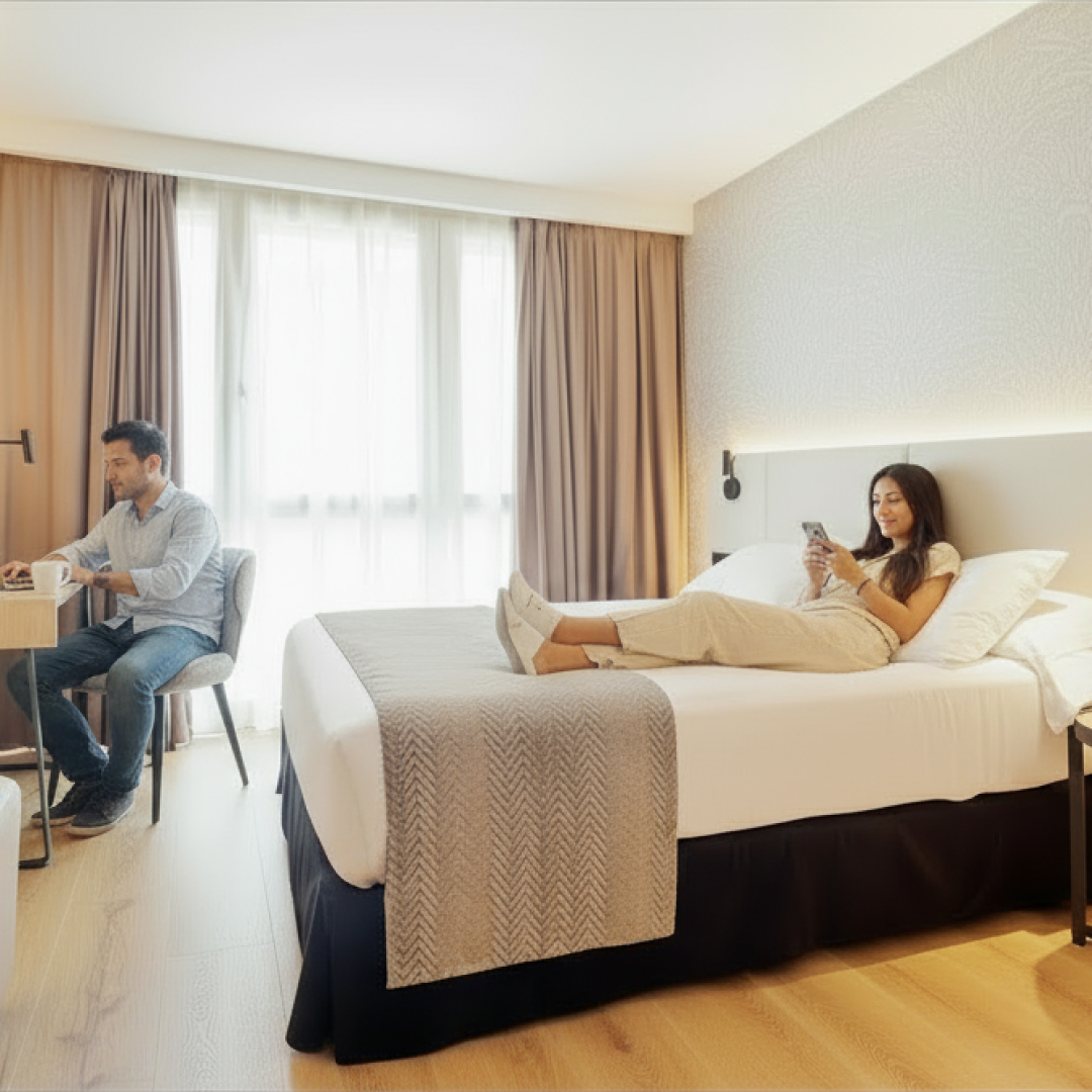 Com os ILUNION Hotels, podes desfrutar de uma experiência totalmente acessível enquanto descobres destinos como Madrid, Barcelona ou Valência. Oferece-te uma estadia inesquecível aproveitando este grande desconto.